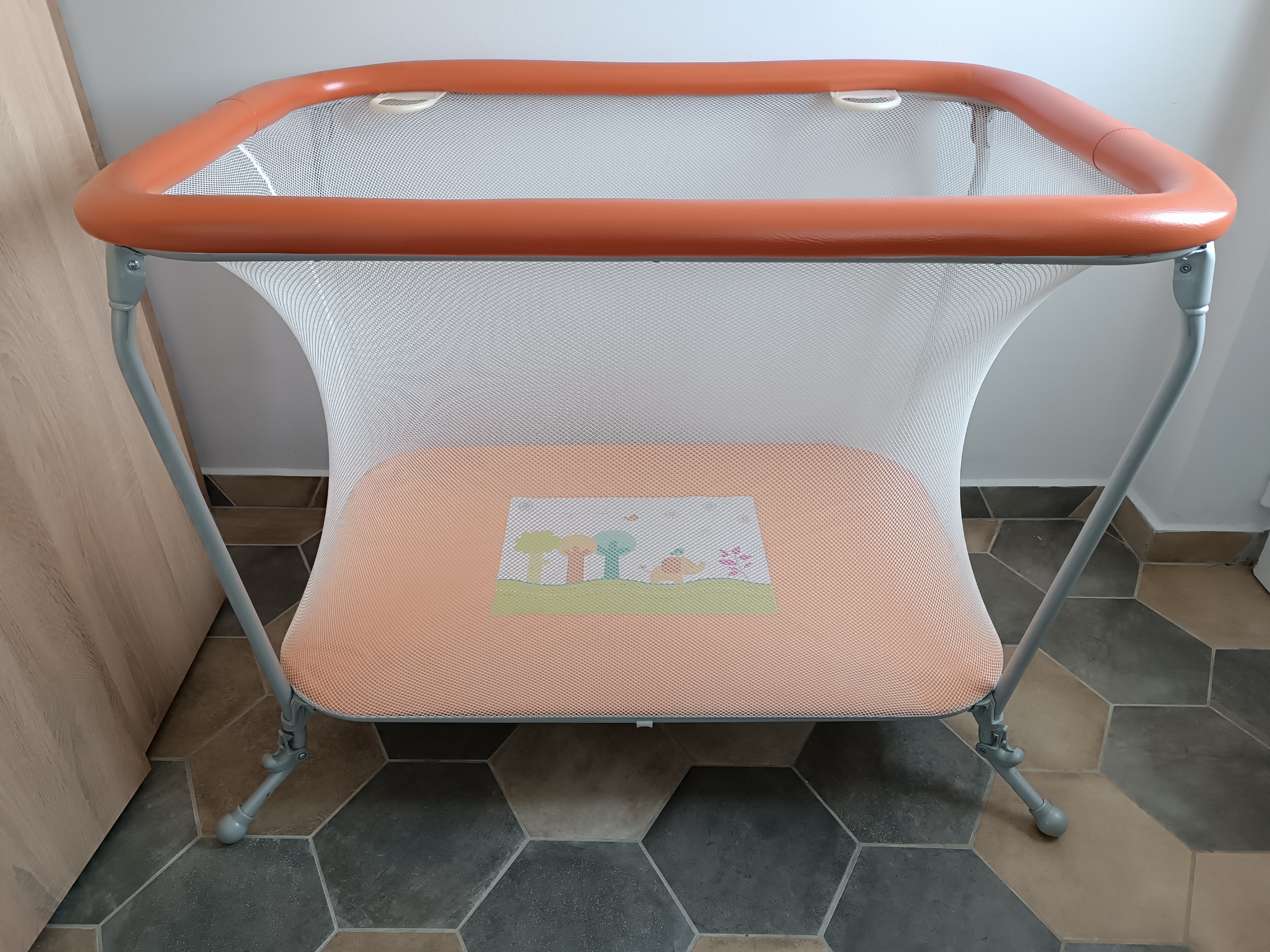 A Carino összecsukható narancssárga színű járóka rendkívül biztonságos és stabil, mivel párnázott aljjal rendelkezik. További előnyös tulajdonságai közé tartozik az egyszerű összeállítás és szétszerelés.